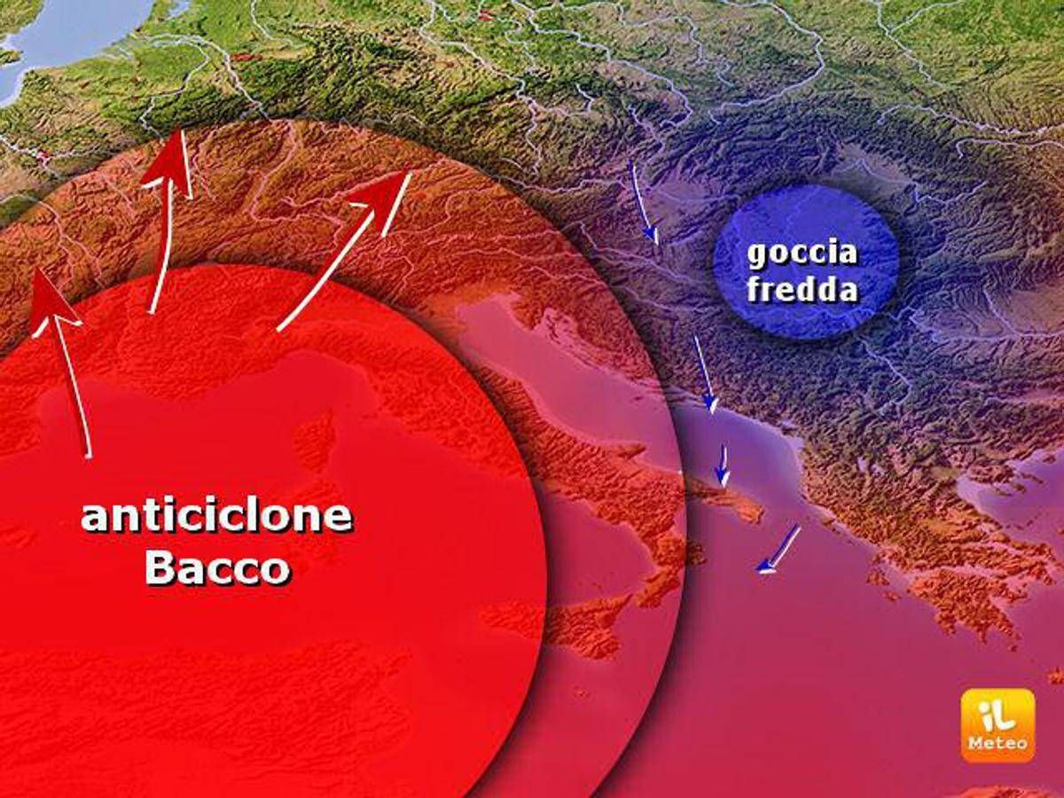 Il caldo che porterà l'anticiclone Bacco non sarà rovente come quello di Nerone o di Caronte, e questo per due motivi. Il primo è il periodo in cui arriva, ovvero settembre, mese in cui le giornate sono più corte, il sole si alza più tardi e tramonta prima e così il calore africano in arrivo non avrà molte ore a disposizione per intensificarsi. Il secondo è la presenza di una minaccia, ossia una goccia fredda in discesa dalla Scandinavia. Questa dovrebbe sfiorare l'Italia, ma facendolo attiverà dei venti freschi nordorientali che soffieranno forti al Sud, mitigando un po’ la calura africana e provocando anche alcuni forti temporali.