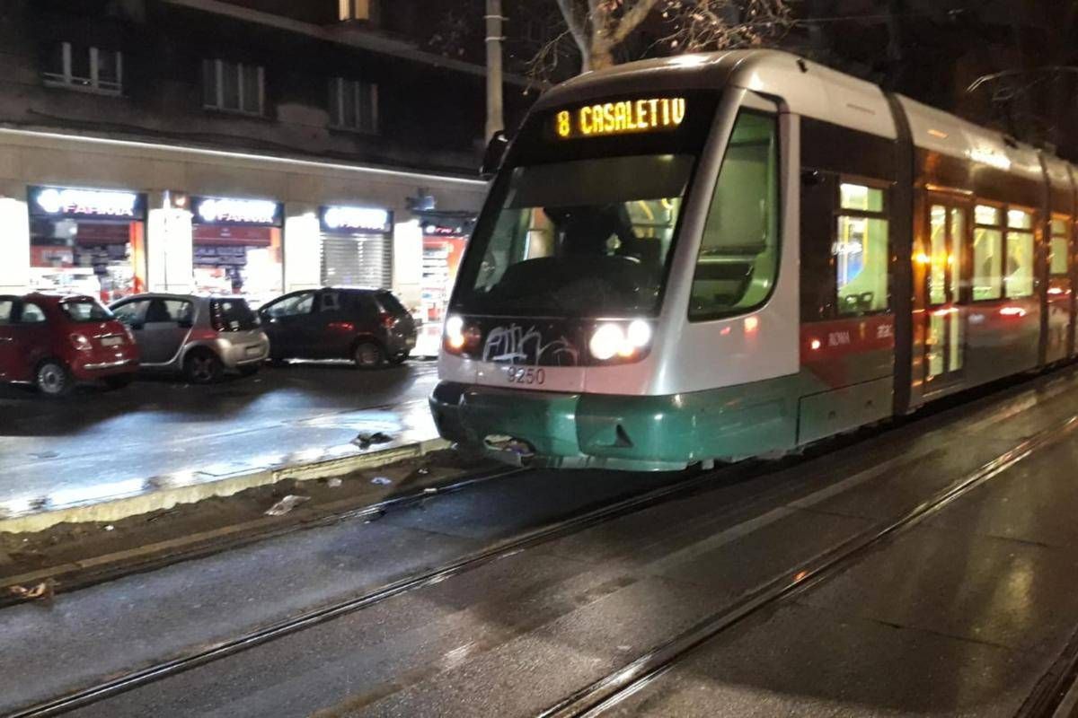 Ha colpito con un calcio la porta di vetro, anteriore destra, del tram della linea 8 dell’Atac e si è poi allontanato per le vie limitrofe riuscendo a fare perdere le proprie tracce. Una 19enne, studentessa straniera, che era seduta vicino alla porta, ha riportato lievi escoriazioni alla gamba provocate dalla schegge. E' accaduto ieri sera verso le 17 all'altezza della fermata di piazza Gioacchino Belli a Roma. Dopo la segnalazione giunta al numero di emergenza 112, i carabinieri della stazione Porta Portese e del Nucleo Operativo della Compagnia Trastevere sono intervenuti sul posto. Â