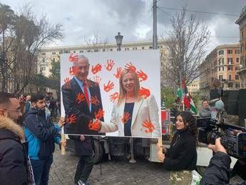 Si stanno radunando a piazza Vittorio, quartiere Esquilino di Roma, i manifestanti che hanno indetto il corteo pro Palestina che arriverà a piazzale Tiburtino. Fra le bandiere palestinesi i manifestanti hanno issato anche un cartellone con la foto della stretta di mano tra il presidente israeliano Benjamin Netanyahu e la premier Giorgia Meloni con impronte di mani insanguinate. Sul posto è presente la polizia.