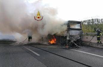 Bus turistico in fiamme sulla corsia esterna del Grande Raccordo anulare di Roma (Gra), all'uscita tra Casilina e Prenestina, nessun ferito. Alle 8.30 di questa mattina i vigili del fuoco sono intervenuti con tre mezzi (12A, 10A, AB10) dopo che era giunto alla Sala Operativa la segnalazione di un pullman turistico in fiamme sull'A90.