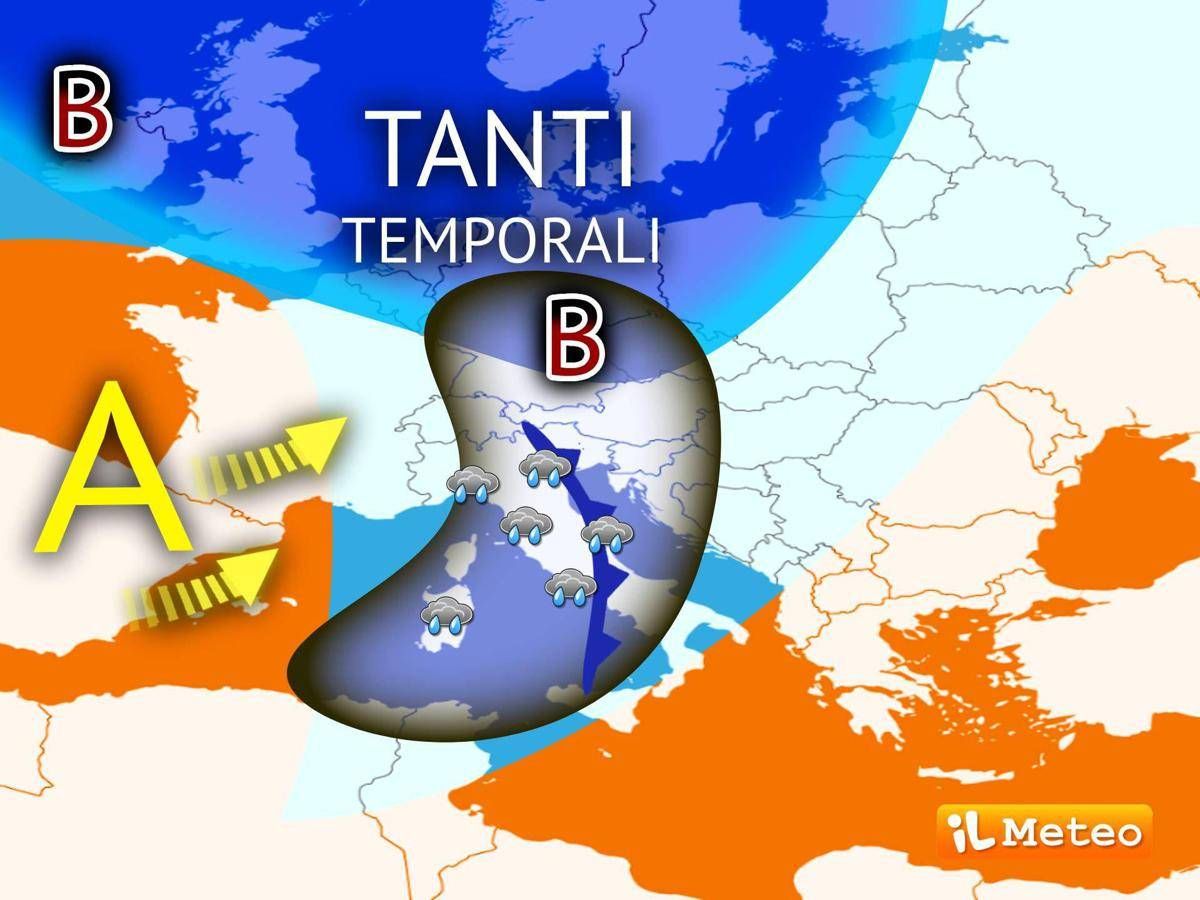 Giovedì 2. Al nord: fortemente instabile su tutte le regioni. Al centro: più rovesci su Toscana, Umbria e Lazio, alternati a schiarite altrove. Al sud: peggiora nel pomeriggio su Campania, Puglia e Basilicata.