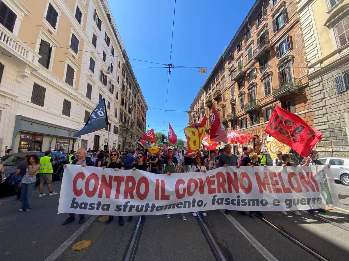 Stanno arrivando a piazza Vittorio i manifestanti che prenderanno parte al corteo promosso dal Comitato 1 giugno, che, secondo quanto affermato dagli stessi promotori, rappresenta la prima mobilitazione unitaria nazionale contro il governo Meloni. Oltre 50 le sigle che hanno aderito alla mobilitazione tra realtà sindacali, come Usb, sociali, politiche, studentesche, comunità palestinesi, giovani delle acampade universitarie di tutta Italia e migranti. Tra gli striscioni esposti nella piazza, presidiata dalle forze dell'ordine, dove sventolano bandiere della Palestina, bandiere rosse del partito comunista e di 'Potere al Popolo', si legge "Abbassare le armi e alzare i salari''.
