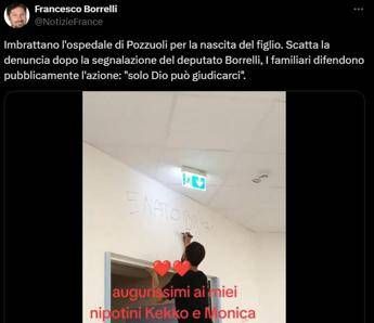 Hanno imbrattato una parete dell'ospedale di Pozzuoli (Napoli) con la scritta 'E' nato Bryan' per celebrare la nascita del figlio. Il video, pubblicato su Facebook dal deputato di Avs Emilio Borrelli, è diventato subito virale scatenando le polemiche. I parenti autori della scritta non si sono scusati, ma hanno risposto alla denuncia social. "Non siete degni di giudicare gli altri, l’unico che ci può giudicare è il Signore e nessun altro più. Piuttosto di applicarvi su una scritta applicatevi su cose che in televisione non fanno vedere, su quest’ospedale ci sono persone che soffrono e nessuno li prende in considerazione. Persone che attendono 5,6 ore per farsi visitare da qualcuno poi vi lamentate quando succede qualcosa", così le parole riportate dal parlamentare Borrelli. Â