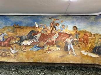 L’ 11,12 e 13 ottobre, in occasione del Tevere Day dopo più di 40 anni, sarà possibile visitare il Murale di Orfeo Tamburi “Carnevale Romano” situato all’interno del palazzo dell’Anagrafe. L’opera, che si trova nel seminterrato dell’immobile, all’interno di un ambiente nato come “sala di rappresentanza”, è stata realizzata ad affresco su un supporto murario di foratini che, sollevato da terra e incorniciato da una fascia di ottone, corre con un insolito sviluppo curvilineo su tre pareti della sala, per un totale di 46, 50 mq di superficie. L’artista racconta gli eventi legati al carnevale senza soluzione di continuità, da sinistra verso destra, in un crescendo di colori e immagini che coinvolgono lo spettatore nella vivace atmosfera della festa.