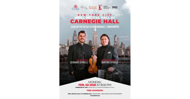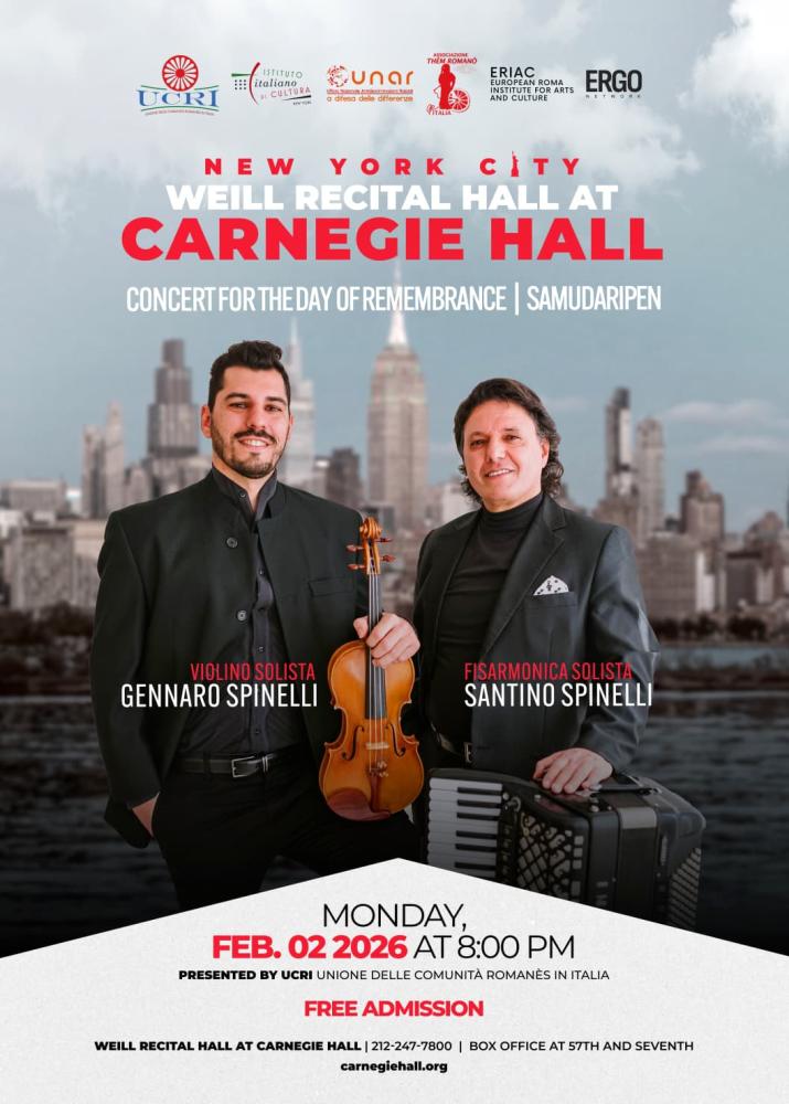 Nella prestigiosa Carnegie Hall a New York, il 2 febbraio alle 18 si terrà il Concert for the Day of Remembrance / Samudaripen, promosso e organizzato dalla Union of Roma Communities in Italy (UCRI) in occasione della Giornata Internazionale della Memoria.