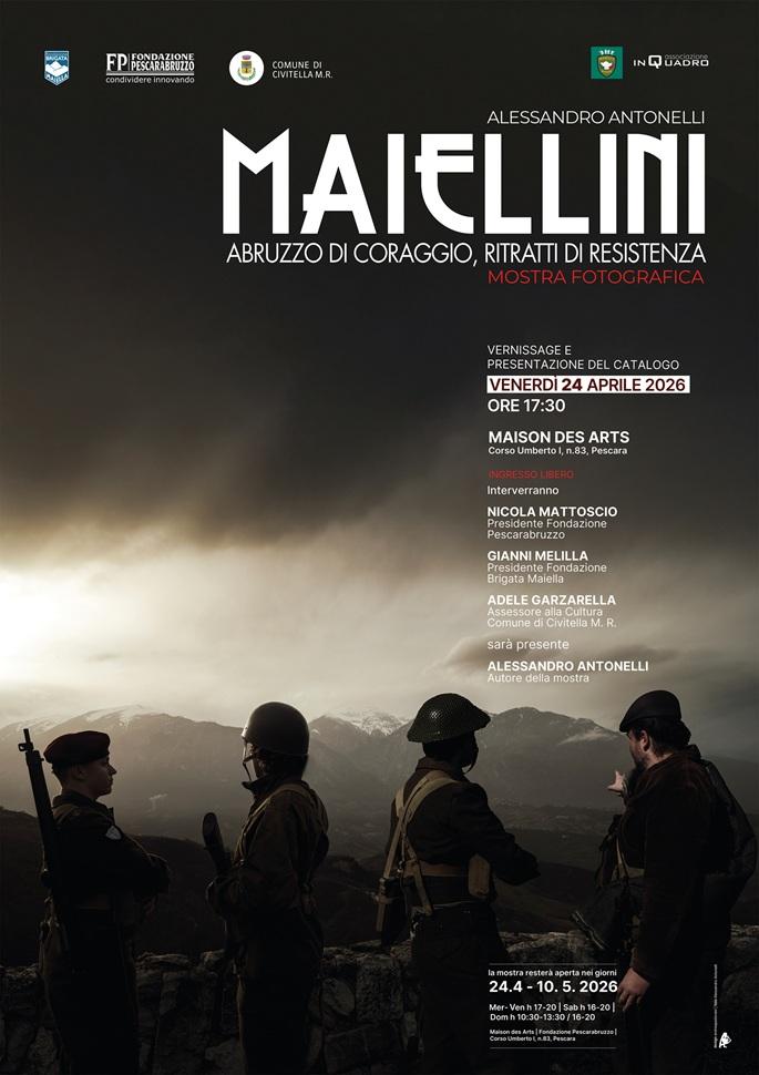 Realizzata in occasione della festa per 81° Anniversario della Liberazione, grazie ad una collaborazione tra la Fondazione Pescarabruzzo, la Fondazione Brigata Maiella e il Comune di Civitella Messer Raimondo, l’esposizione sarà inaugurata venerdì 24 aprile 2026 alle ore 17.30 presso la Maison des Arts in Corso Umberto I 87 a Pescara.