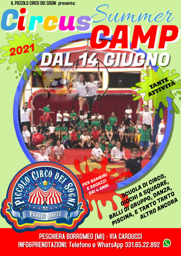 Il Piccolo Circo dei Sogni di Paride Orfei e Sneja Nedeva si sta occupando di organizzare nei minimi dettagli il Circus Summer Camp, ovvero un campus estivo attraverso il quale tutti i partecipanti avranno la possibilità di scoprire in prima persona il mondo circense, sperimentare le innumerevoli discipline (giocoleria, contorsionismo, acrobatica, equilibrismo, discipline aeree), socializzare e divertirsi.