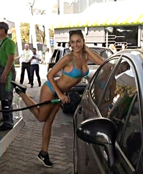 Un distributore di carburanti a Kiev, nell'agitata nazione dell'Ucraina, vede sfilare decine di donne in bikini. Moda? Caldo eccessivo? No: si tratta dell'iniziativa voluta dal vulcanico gestore, che offre il pieno gratis a tutti i clienti che si presentano in costume a due pezzi.