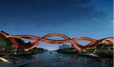 Le forme più strane sono la caratteristica dei ponti cinesi . Ne esiste uno di colore rosso, il colore portafortuna, Lucky knot bridge, costruito dalla società olandese Next, che ha vinto il premio per la creazione di un ponte panoramico originale. Attraversa il fiume Dragon King Harbor, nella città Changsha, ha vari ‘nodi’ artistici e percorsi pedonali panoramici.E’ stato ispirato dal nastro del matematico Mobius, con le superfici non orientabili. Ma è la storia cinese che ha ispirato i ponti a nodo cinese ( è un simbolo fortunato e vittorioso).