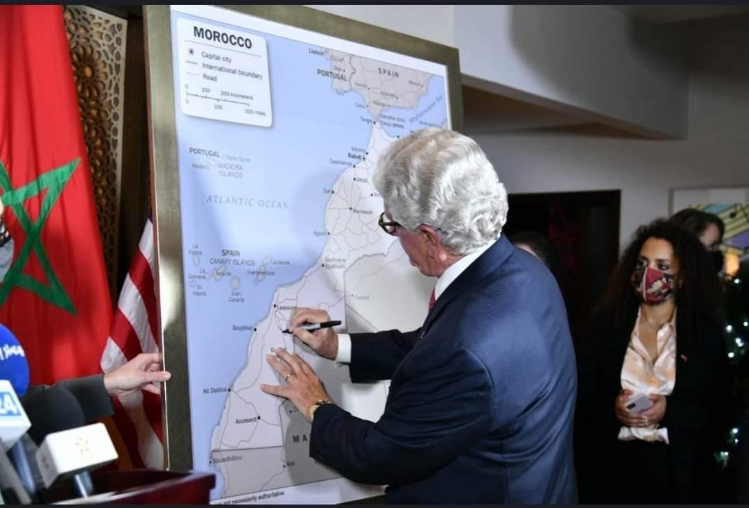 L’ambasciatore degli Stati Uniti in Marocco, David Fischer, ha presentato e firmato sabato a Rabat la mappa del Marocco, comprendente le province meridionali, che è stata ufficialmente adottata dal governo americano.