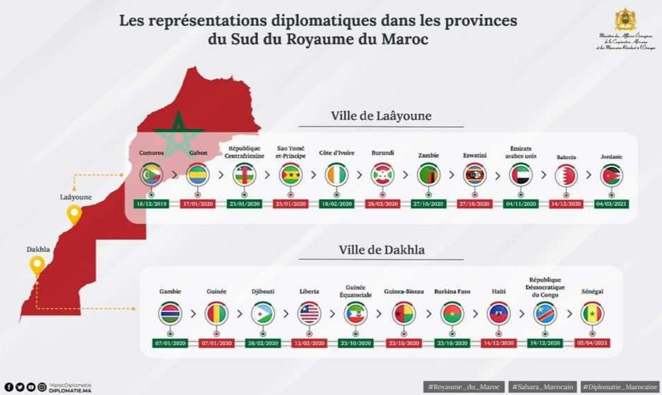 Dall’inizio dell’anno scorso, la città di Dakhla ha conosciuto una forte dinamica diplomatica con l’inaugurazione dei consolati di Gambia, Guinea, Gibuti, Liberia, Burkina Faso, Guinea Bissau, Guinea Equatoriale e Repubblica Democratica del Congo (RDC), oltre alla Repubblica di Haiti.