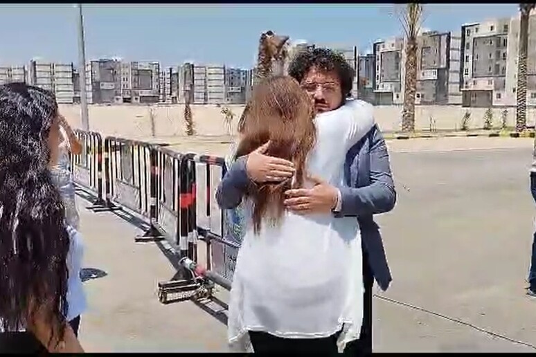 Appena liberato, dopo aver stretto la mano a un uomo della sicurezza in maglietta a righe al limitare di una serie di transenne, Patrick Zaki ha abbracciato per vari secondi la madre Hala, poi la fidanzata Reny Iskander, la sorella Marise e il padre George. Lo ha constato l'ANSA sul posto.