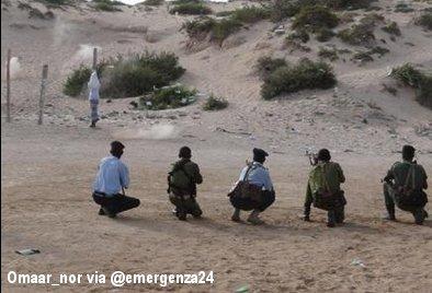 Questa mattina una discreta folla e alti funzionari delle forze di sicurezza si sono radunati alla scuola della Polizia di Mogadiscio in Somalia, per assistere all'esecuzione di due assassini mediante plotone d'esecuzione. Bashir Osman, 22 anni, e Abdullah Sharif, 25 anni, sono stati ritenuti responsabili da un tribunale militare della morte di Mohamed Mohamud Tima 'adde, corrispondente della britannica Universal tv e attivo nella difesa dei diritti umani, specialmente nella martoriata nazione somala grazie alle sue inchieste e per conto delle quali era stato mortalmente ferito il 22 ottobre dello scorso anno e deceduto in ospedale per le ferite multiple di arma da fuoco. Il portavoce della magistratura di Mogadiscio, Colonnello Mohamed Hassan, ha riferito che ad aggravare la situazione penale dei due somali anche l'appartenenza al gruppo militante islamico “Al Shabaab”, da tempo in combutta allo scopo di rovesciare l'attuale governo somalo. I due killer sono stati legati sommariamente a degli alberi con la faccia coperta da sacchetti e qui sono stati liquidati da un plotone di esecuzione della Polizia locale.