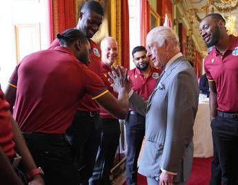 La squadra di cricket delle Indie occidentali ha insegnato a Re Carlo una nuova stretta di mano in cinque passi, fra cui un 'batti il cinque' e una mano sul petto. "Davvero complicato", ha commentato il sovrano che ha ricevuto la squadra a Buckingham Palace. Â