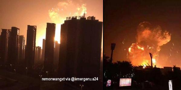 Oggi sono stati ritrovati due uomini – un pompiere e un funzionario portuale – miracolosamente vivi tra le macerie a meno di cinquanta metri dall'epicentro della prima esplosione, mentre le Autorità cinesi dichiaravano di aver spento tutti i roghi: una serie di esplosioni, pur di minore entità rispetto alle precendenti hanno innescato altri incendi, facendo frettolosamente evacuare tutti i residenti dell'area, il cui numero non è stato precisato ma è calcolato in molte centinaia di persone.