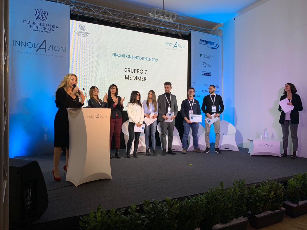 La mattinata è terminata con la premiazione dei gruppi di universitari abruzzesi che hanno presentato la migliore soluzione per ciascuno dei casi aziendali proposti da Coesum, EcohMedia e Metamer nell’Hackathon InnovAzioni2019.