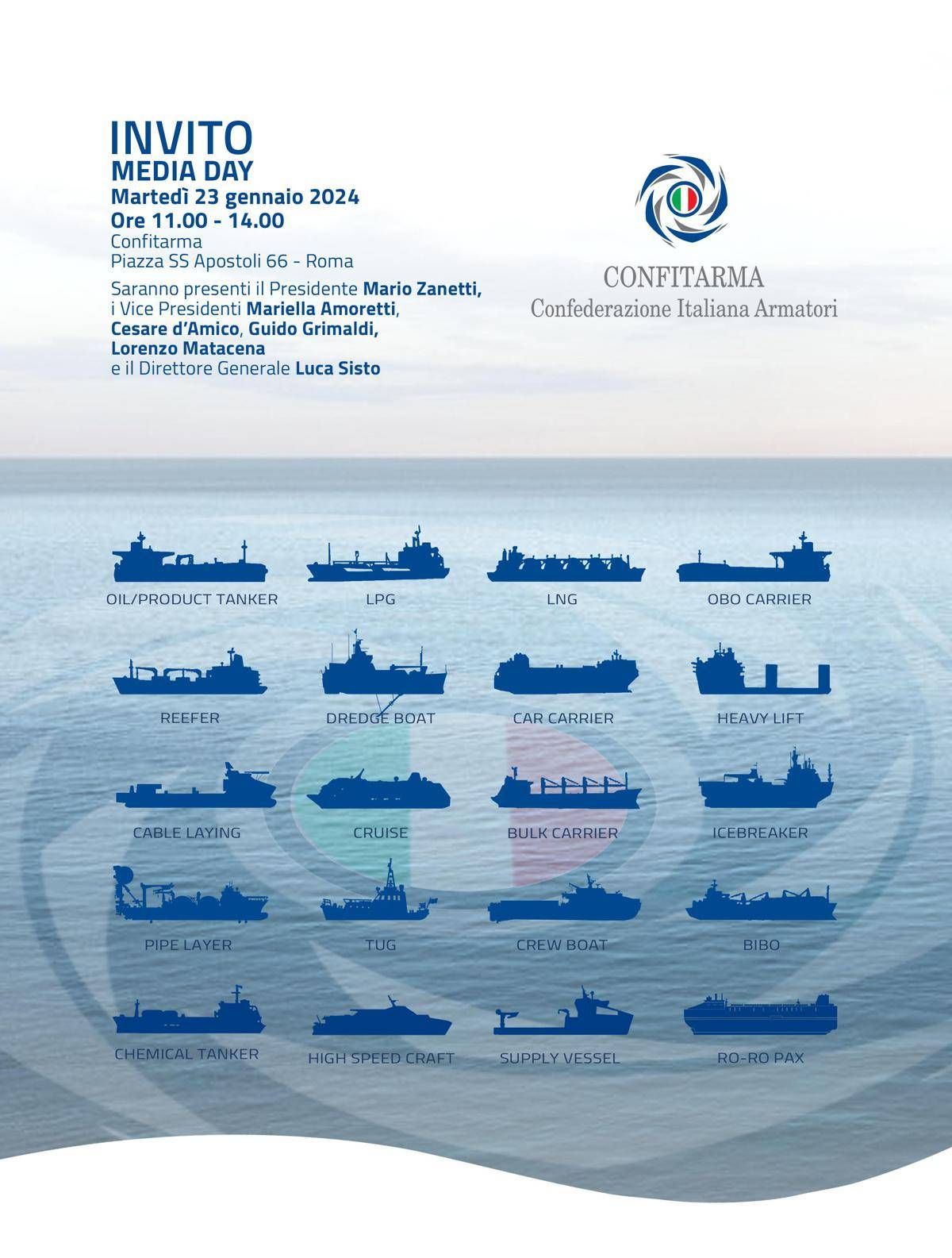Si è svolto questa mattina a Roma il Media Day di Confitarma, alla presenza del Presidente Mario Zanetti, dei Vice Presidenti Mariella Amoretti, Cesare d’Amico, Guido Grimaldi, Lorenzo Matacena e del Direttore Generale Luca Sisto. L’evento è stato voluto per presentare la nuova squadra di Presidenza e le azioni prioritarie per affrontare le principali sfide che attendono nel breve e medio periodo l’armamento italiano e il Paese. “Sono orgoglioso di guidare l’associazione che da 123 anni rappresenta un settore fondamentale e strategico per l’economia e l’industria nazionali. Confitarma rappresenta oggi il 70% dell’industria armatoriale italiana che opera una flotta mercantile diversificata in tutti i settori necessari per il Paese”, ha sottolineato in apertura il Presidente Mario Zanetti.