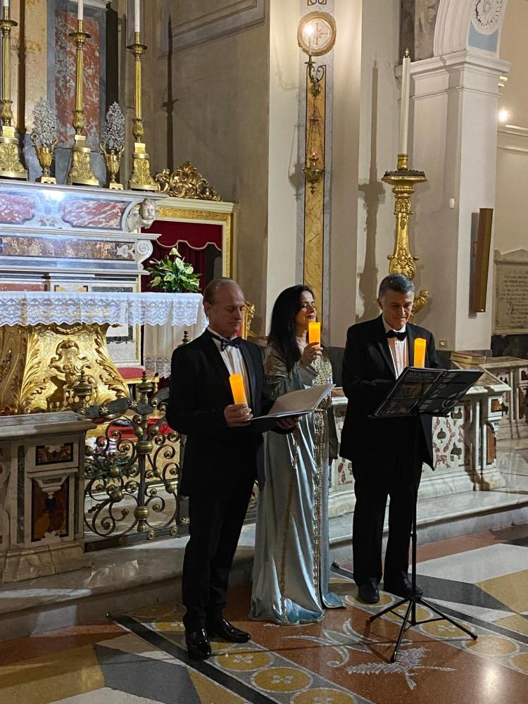 L’ensemble ha offerto un’interpretazione coesa e raffinata: De Maio ha colpito per eleganza e luminosità vocale, Luca e Lucio Lupoli per equilibrio e intensità espressiva, sostenuti dal pianismo attento e sensibile del M° Apolenskaja. Le letture di Teresa Mori hanno arricchito il concerto con un filo narrativo coerente e meditativo.