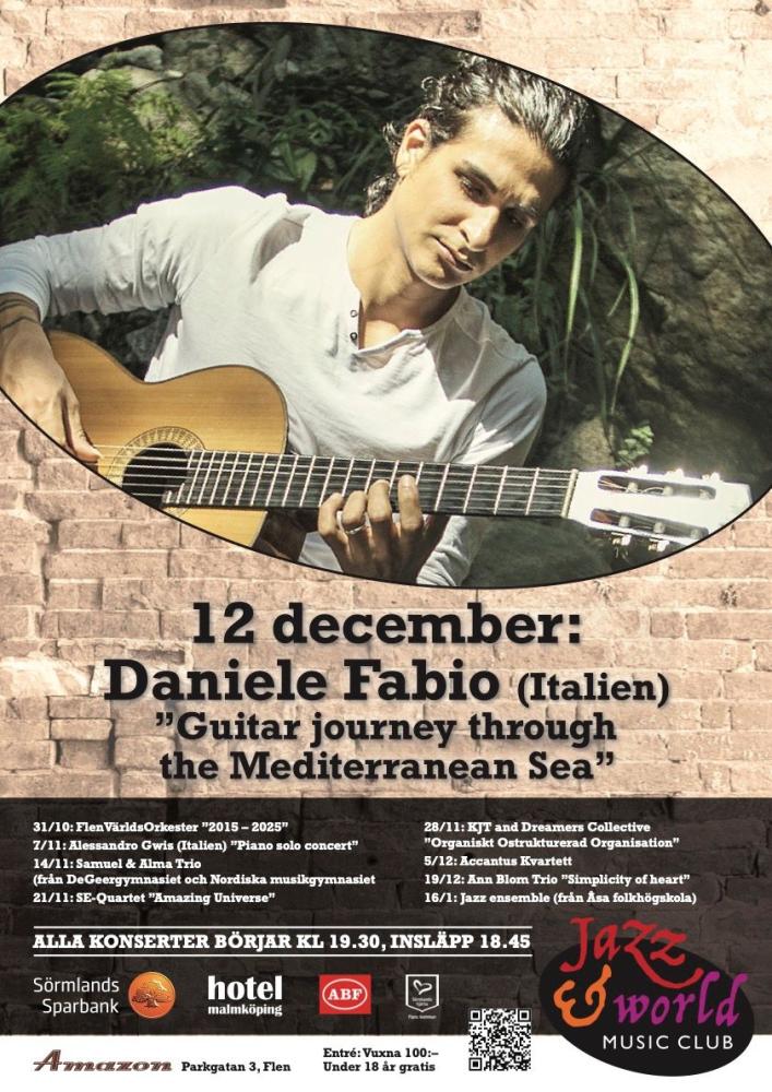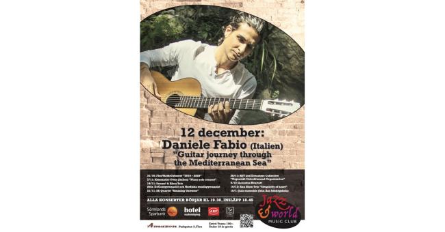 Il 12 e 13 dicembre il chitarrista, cantante e compositore Daniele Fabio approderà in Svezia con Il viaggio attraverso il mare del Mediterraneo / Guitar Journey Through the Mediterranean Sea, una nuova tappa del suo percorso solistico internazionale. L’artista si esibirà in due prestigiosi jazz club, portando nel Nord Europa il calore, i colori e le narrazioni musicali della sua terra d’origine.