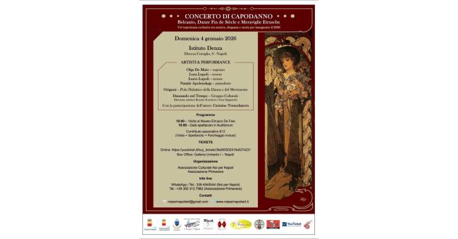 Napoli inaugura il 2026 con un evento culturale unico nel suo genere, capace di unire in un’unica esperienza belcanto lirico, melodramma, operetta, romanze da salotto, danza classica, danze d’epoca in costume fin de siècle e la visita esclusiva a uno dei luoghi museali più prestigiosi e rari della città : il Museo Etrusco De Feis.