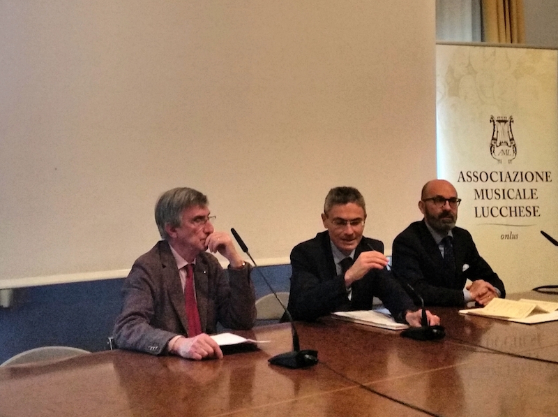L’integrale delle opere per pianoforte, violino e violoncello di Beethoven con il Trio di Parma, l’energia degli astri nascenti della musica classica italiana Filippo Gorini, Edoardo Zosi e Leonora Armellini, le grandi formazioni da camera, come il Quartetto di Cremona, e gli appuntamenti dedicati all’incontro tra musica e drammaturgia. Questo e molto altro per l’edizione 2017 della Stagione cameristica dell’Associazione musicale lucchese, presentata venerdì 9 dicembre nella Sala De’ Servi, in San Micheletto (Lucca), dal presidente Marco Cattani e dal direttore artistico dell’Aml, Simone Soldati insieme al vice presidente della Fondazione Cassa di Risparmio di Lucca, Maido Castiglioni.