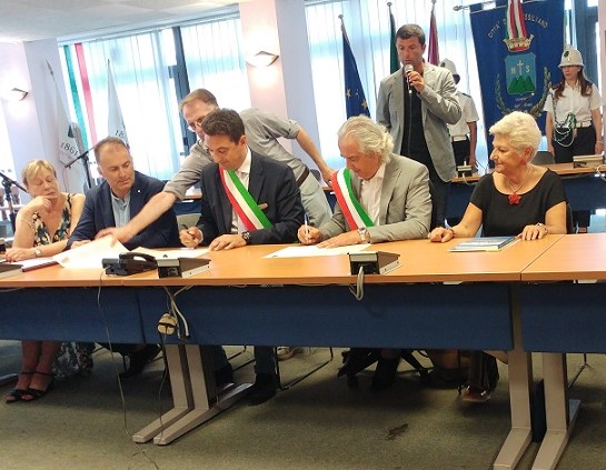 Belle parole e scambi di doni, per sigillare il patto, e foto ricordo con tutti i partecipanti per inserire una nuova tassello di un puzzle in costruzione che vede il Comune di Montesilvano come perno centrale per questa crescita oltre i confini comunali.
