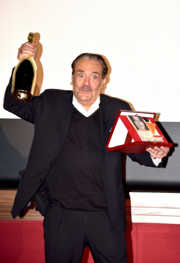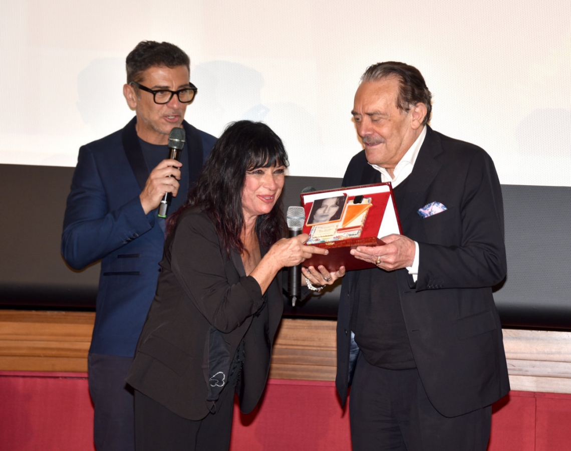 Momento toccante della serata la visita del grande scultore Adriano De Angelis, titolare dello storico studio Cinears, che ha messo a disposizione una lupa nell’area allestita per i fotografi all’esterno della Sala Fellini.