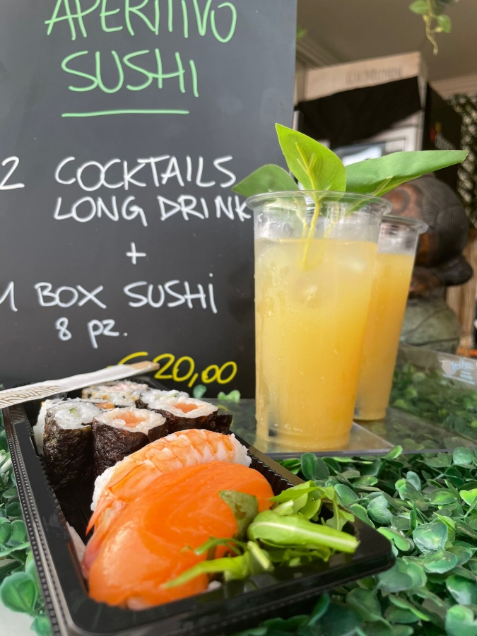 Dal sushi bar alle fritture di pesce con patatine homemade, dai panini assortiti con pulled pork e/o tacchino, con costolette affumicate e/o affettati misti, a quelli gourmet con stracciatella, pastrami, pomodori secchi e lattughino, o con burrata, alici e pistacchio, e ancora stracciatella, melanzane pomodori secchi. Pizza e krapfen, arancini e supplì al telefono. Maxi insalate o macedonie miste.