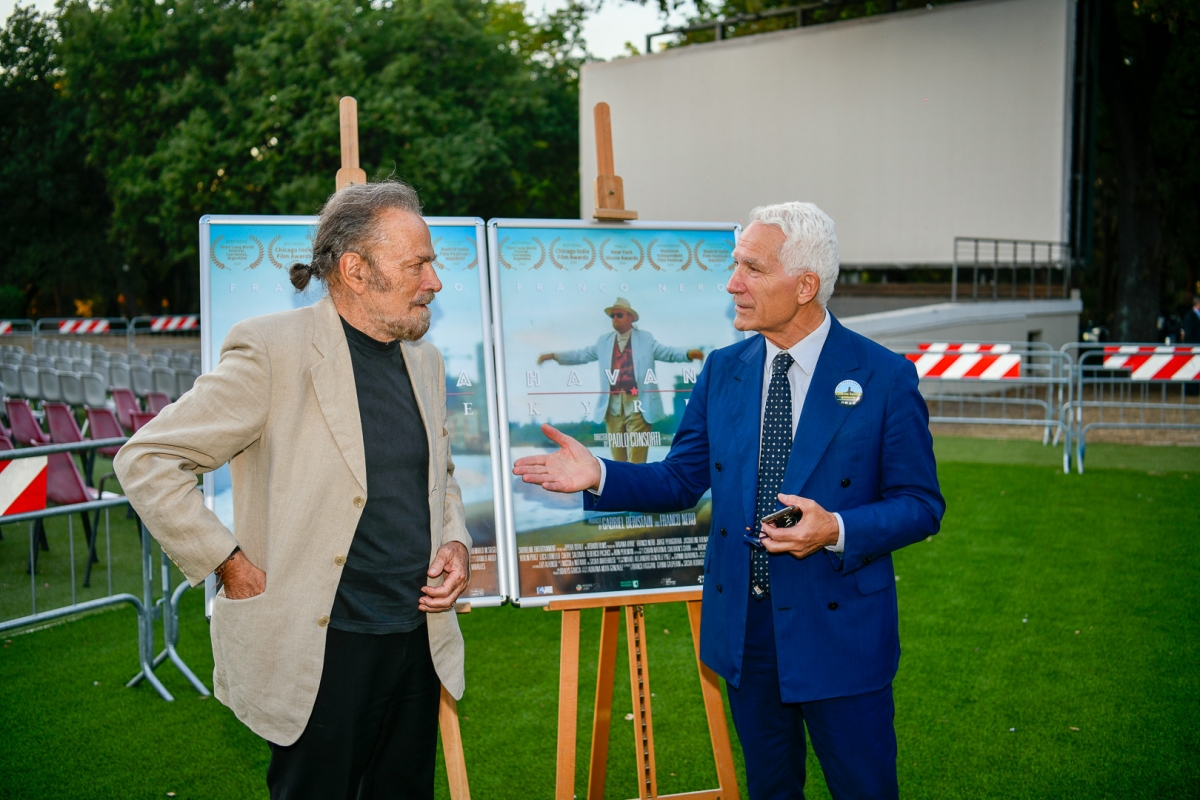 Nell’elegante déhor adiacente la Casa del Cinema di Roma ha avuto luogo l’evento di presentazione del film Havana Kyrie, regia di Paolo Consorti, con Franco Nero, Jorje Perugorria, Andros Perugorria, Jacqueline Arenal, Kriemhild Maria Siegel, Ron Perlman, Luca Lionello, Yerlin Pérez, Alexis Dias de Villegas, Riccardo Mei, Federico Pacifici, Olga Lidia Alfonso. Colonna sonora di Danilo Aielli. Dopo le foto di rito con Franco Nero è stato offerto agli ospiti un sontuoso rinfresco. A seguire è stato proiettato il film, apprezzato dalla folta platea, preceduto da un affettuoso video saluto di Giuliano Montaldo.