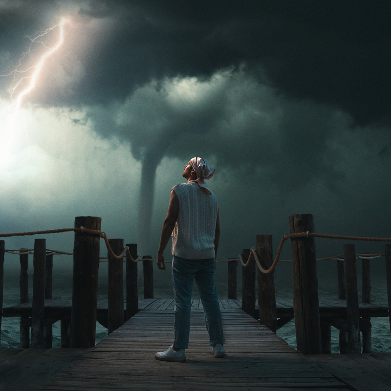Una burrasca emotiva che travolge tutto in pochi istanti, lasciandoci soli, inermi e attoniti con i nostri pensieri, i ricordi e le immagini di coloro che ci hanno amati, ma siamo riusciti soltanto a ferire e deludere a causa dei nostri tumulti interiori - «Ho un’immagine in testa, tu che piangi sola in mezzo ad una tempesta, lì ferma che mi aspetti ancora» -, che l’artista spiega con queste parole: