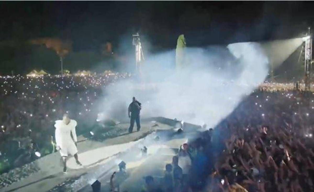 Travis Scott in concerto al Circo Massimo di Roma, prima data in assoluto dopo il lancio del film 'Circus Maximus' e la pubblicazione dell’album 'Utopia'. Centinaia e centinaia gli spettatori a seguire il live che, a sorpresa, ha visto sul palco insieme all'artista anche il rapper Kanye West in un duetto sulle note di 'Can’t Tell Me Nothing'.
