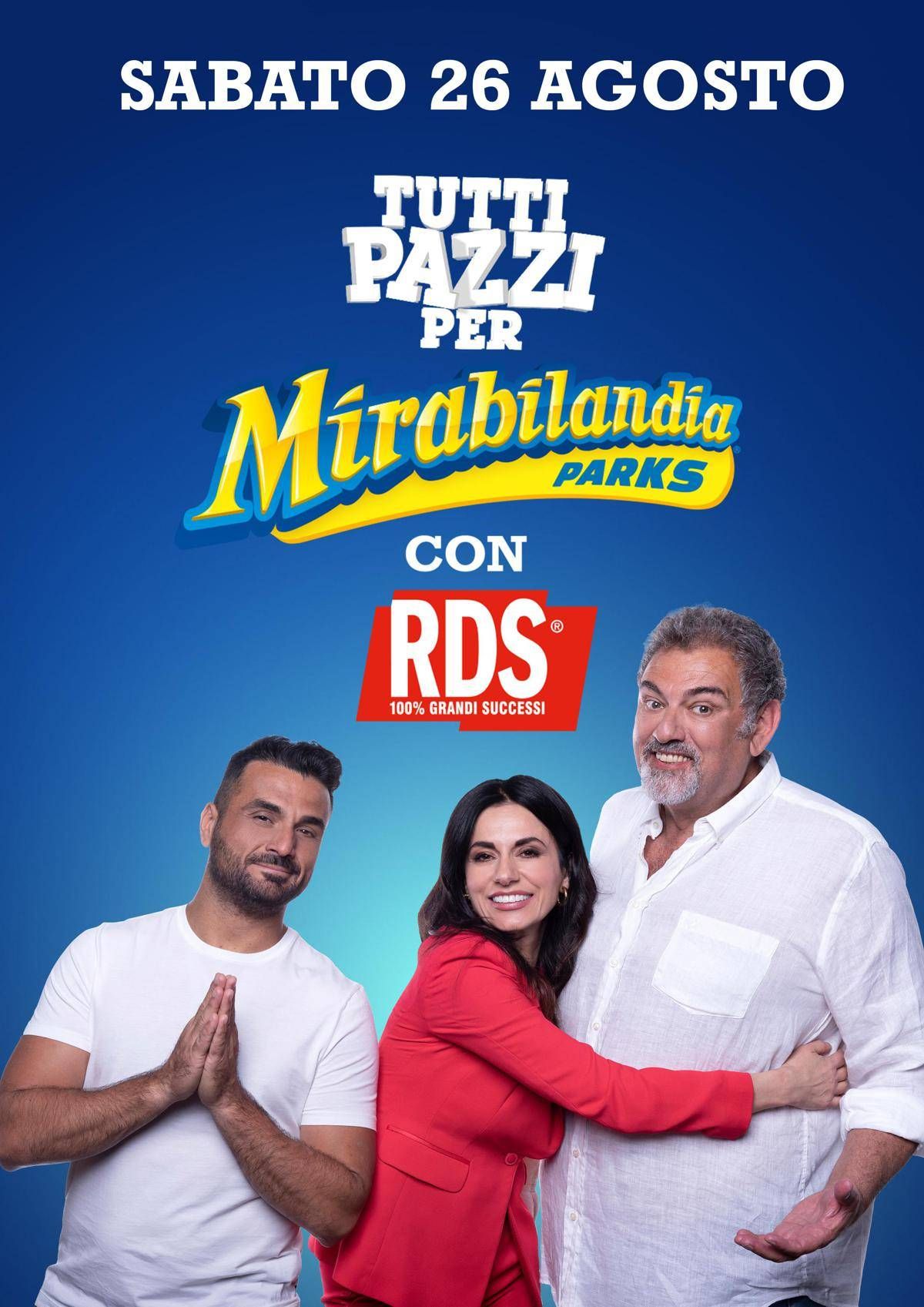 Musica, risate e tutta l’energia del trio più esplosivo della radio italiana: Rossella Brescia, Ciccio Valenti e Baz direttamente da Rds 100% Grandi Successi. Sabato 26 agosto, al Parco divertimenti più grande d’Italia sbarca in esclusiva il live show di 'Tutti Pazzi per Mirabilandia': un appuntamento imperdibile con tanta musica, animazione, comicità, ironia, djset e gadget da non perdere. Dalle ore 21, in piazza della Fama nel Parco divertimenti di Ravenna, il pubblico non sarà solo un semplice spettatore ma avrà la possibilità di interagire con lo speciale trio per un sabato sera…da pazzi!