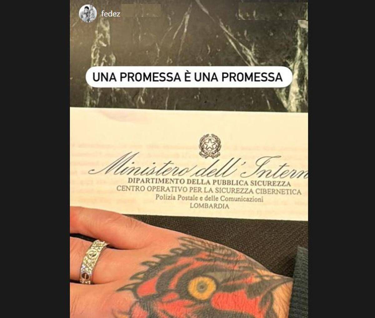 "Una promessa e una promessa". Detto, fatto. Fedez denuncia l'hater che su X ha pubblicato un post di pessimo gusto con un messaggio riferito al figlio Leone. Il bambino, sabato, prima del match Milan-Frosinone ha accompagnato in campo Theo Hernandez, esterno rossonero. Leone, come mostrano i video pubblicati dal padre, è apparso emozionato e teso in campo. Avrebbe dovuto alzare la maglia del Frosinone e mostrare quella del Milan, come concordato con il papà prima della 'missione', ma l'emozione ha avuto il sopravvento. La Lega di Serie A ha evidenziato la presenza in campo del figlio di Fedez con un post su X dedicato ad un "accompagnatore speciale". Il messaggio è stato giudicato inopportuno da molti utenti, che hanno stigmatizzato il trattamento riservato dalla Lega solo ad uno dei bambini presenti sul terreno di gioco.