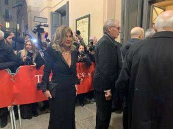 Strascichi, velluto, qualche piuma, raso e tanto nero, con tocchi di rosso, in omaggio alle vittime dei femminicidi, ma anche di verde, bianco e burgundy. Smoking d'ordinanza e qualche colpo di testa che non è passato certo inosservato. Tutta la Milano che conta ha 'sfilato' stasera alla Prima di 'Don Carlo’ di Giuseppe Verdi, che ha inaugurato la stagione lirica al teatro alla Scala, sotto la bacchetta del maestro Riccardo Chailly, nel giorno di Sant'Ambrogio. Â