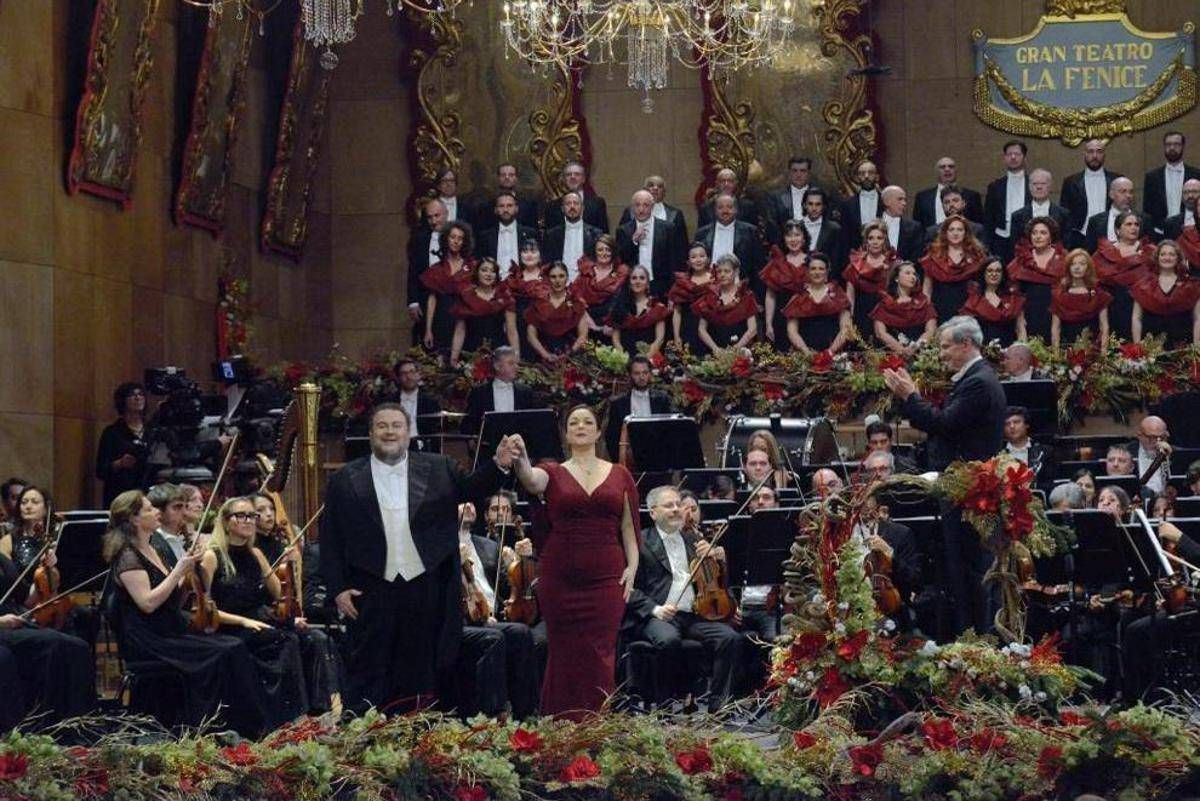 Il programma del Concerto di Capodanno ha proposto una serie di brani amatissimi del repertorio lirico firmati Giuseppe Verdi, Giacomo Puccini e Amilcare Ponchielli e ha preso il via dal coro verdiano tratto dai Due Foscari "Alla gioia… Tace il vento, è queta l'onda". A seguire l'intermezzo orchestrale dalla Manon Lescaut di Puccini ha fato da introduzione a due pagine celeberrime dalla pucciniana Tosca, interpretate rispettivamente dal tenore Fabio Sartori e dal soprano Eleonora Buratto: "E lucean le stelle" e "Vissi d'arte". Il Coro del Teatro La Fenice è stato protagonista nel brano della Traviata di Verdi "Di Madride noi siam mattadori".Â