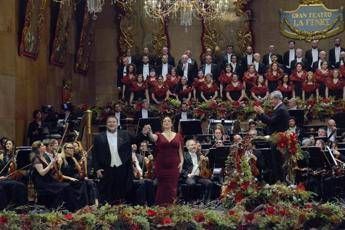 Il programma musicale del Concerto di Capodanno si è composto di due parti: una prima esclusivamente orchestrale con l'esecuzione della Sinfonia n. 2 in re maggiore op. 73 di Johannes Brahms, e una seconda dedicata al melodramma, con una carrellata di arie dal repertorio operistico più amato, intonate dal tenore Sartori e dal soprano, che si è conclusa, tra il tripudio degli spettatori, con "Va, pensiero, sull'ali dorate" dal Nabucco e con il brindisi "Libiam ne' lieti calici" dalla Traviata di Giuseppe Verdi. Al termine oltre cinque minuti di applausi hanno convinto gli artisti a concedere il bis del famoso brindisi. "Da questo meraviglioso teatro desideriamo mandare all’Italia gli auguri per il 2024, perchè sia un nuovo anno pieno di salute, gioia e bellezza e soprattutto tanta musica", ha detto il maestro Fabio Luisi.Â
