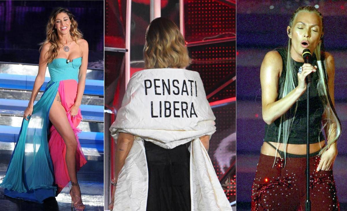 Che dire poi della carrellata di abiti couture sfoggiati da Chiara Ferragni l'anno scorso? Per il guardaroba del suo debutto in diretta tv, l'influencer sceglie di sfoggiare quattro look 'parlanti' per diffondere messaggi forti contro l'odio, la violenza e il sessismo. Memorabile quel 'Pensati libera', ricamato sulla stola bianca dell'abito Dior firmato Maria Grazia Chiuri, che si è trasformato in poco tempo nel bersaglio preferito dell’ironia della rete, tra meme sarcastici e parodie pungenti. Â