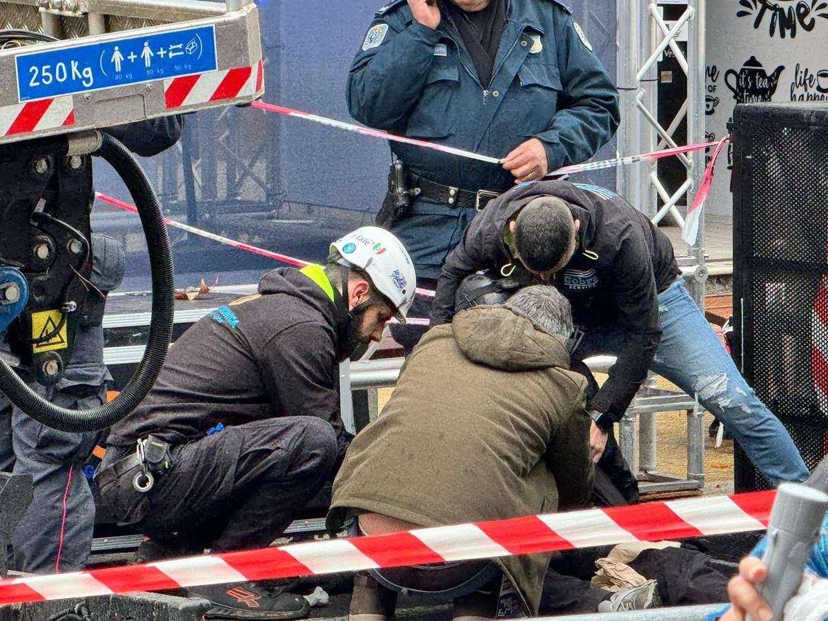 Incidente per un operaio davanti al Palafiori di Sanremo oggi. Un ragazzo che stava smontando il ledwall che è tra il Palafiori e Piazza Colombo, è caduto dalla scala rimanendo a terra. Subito è stata chiamata l'ambulanza che è arriva rapidamente sul posto. Il ledwall veniva rimosso probabilmente in vista dell'arrivo di pioggia e vento forte attesi tra oggi pomeriggio e domani.