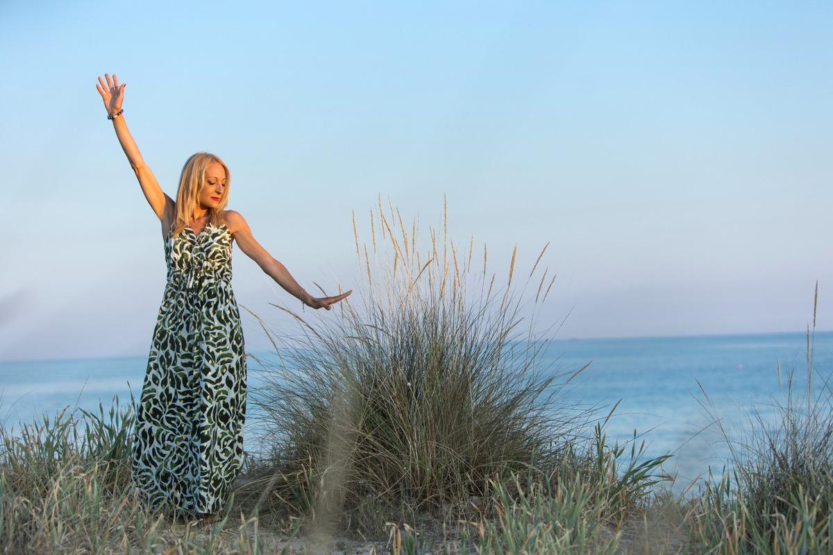 Non quella superficiale, di chi ignora il peso delle cose, ma quella di chi ha imparato a portarle con grazia, lasciandosi attraversare dalla bellezza. Sonia ha fatto proprio questo: è tornata a sé attraverso le cose semplici — la sabbia che scotta sotto i piedi, un tramonto, una festa che non ha bisogno di luci artificiali per cominciare.
