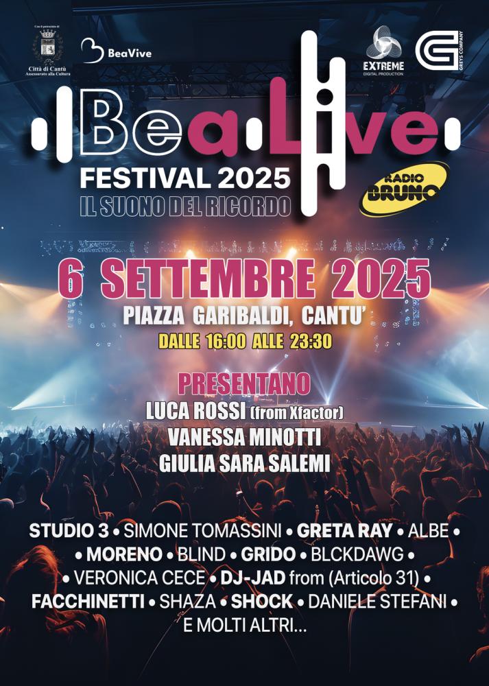 Dalla stessa consapevolezza, e da un intreccio di responsabilità e amore, nasce il BeaLive Festival, in programma sabato 6 settembre 2025 in Piazza Garibaldi a Cantù: un grande evento musicale e sociale, aperto a tutti, con la partecipazione di artisti noti, emergenti e istituzioni.