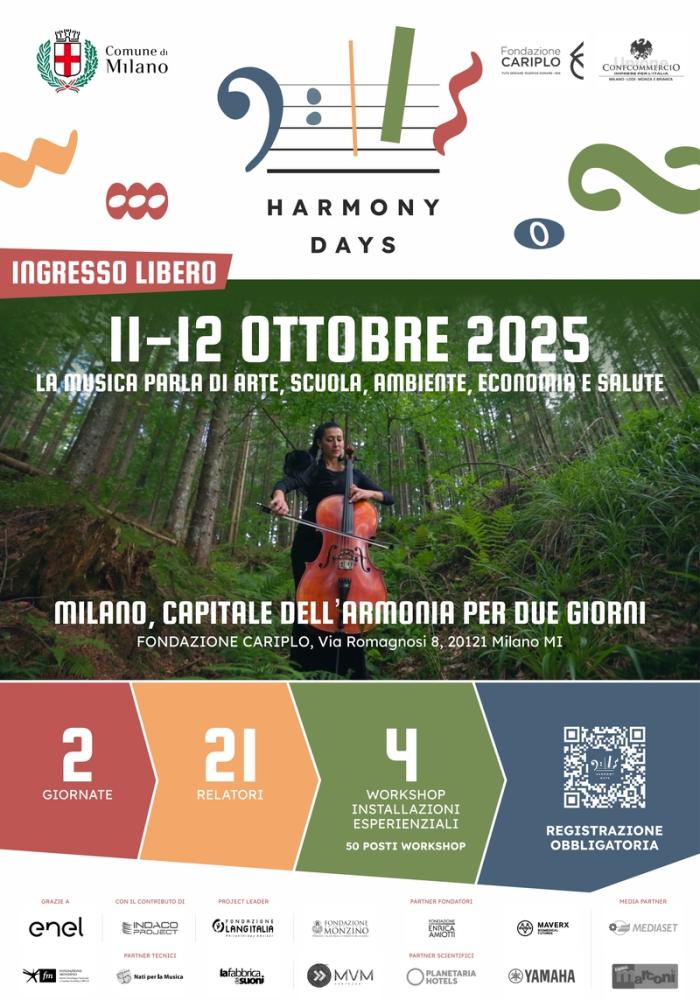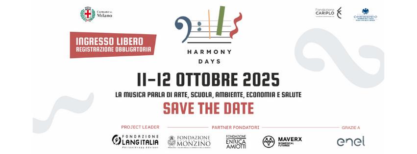 L’11 e il 12 ottobre 2025 il Centro Congressi di Fondazione Cariplo ospiterà la prima edizione degli Harmony Days, una due giorni di incontri, esibizioni e workshop che metteranno al centro la musica come strumento di cura, educazione, inclusione e benessere.