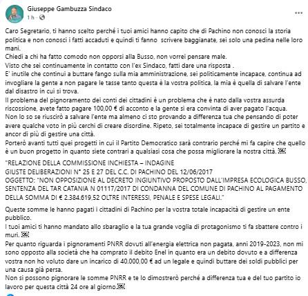 Il Sindaco Giuseppe Gambuzza Risponde al Segretario del Pd attraverso i social .