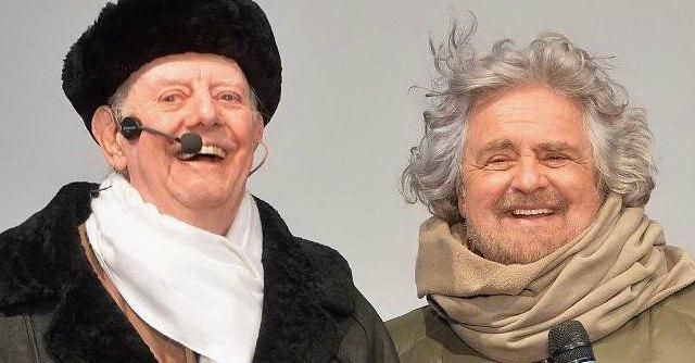 Grillo ricorda il discorso di Fo in occasione di quella festa del febbraio 2013 "Mi sembra di essere tornato indietro di molti anni, alla fine della guerra, l'ultima guerra mondiale. Ci fu una festa come questa e c'era tanta gente come siete voi: felici, pieni di gioia e, non dico speranza, la speranza lasciamola a parte, ma di certezza che si sarebbe rovesciato tutto e non ci siamo riusciti. Fatelo voi per favore, fatelo voi! Ribaltate tutto per favore", aveva detto Fo alla piazza. Io mi ricordo che in quell'occasione c'erano quattro contadini che sono arrivati qua con altri contadini e portavano sei piante. E le hanno piantate una qua una là una là una là ... Le piante erano il segno del 'si ricomincia'. Vorrei che anche questa sera ci fosse quelle piante piantate per dire "Si ricomincia da capo!".