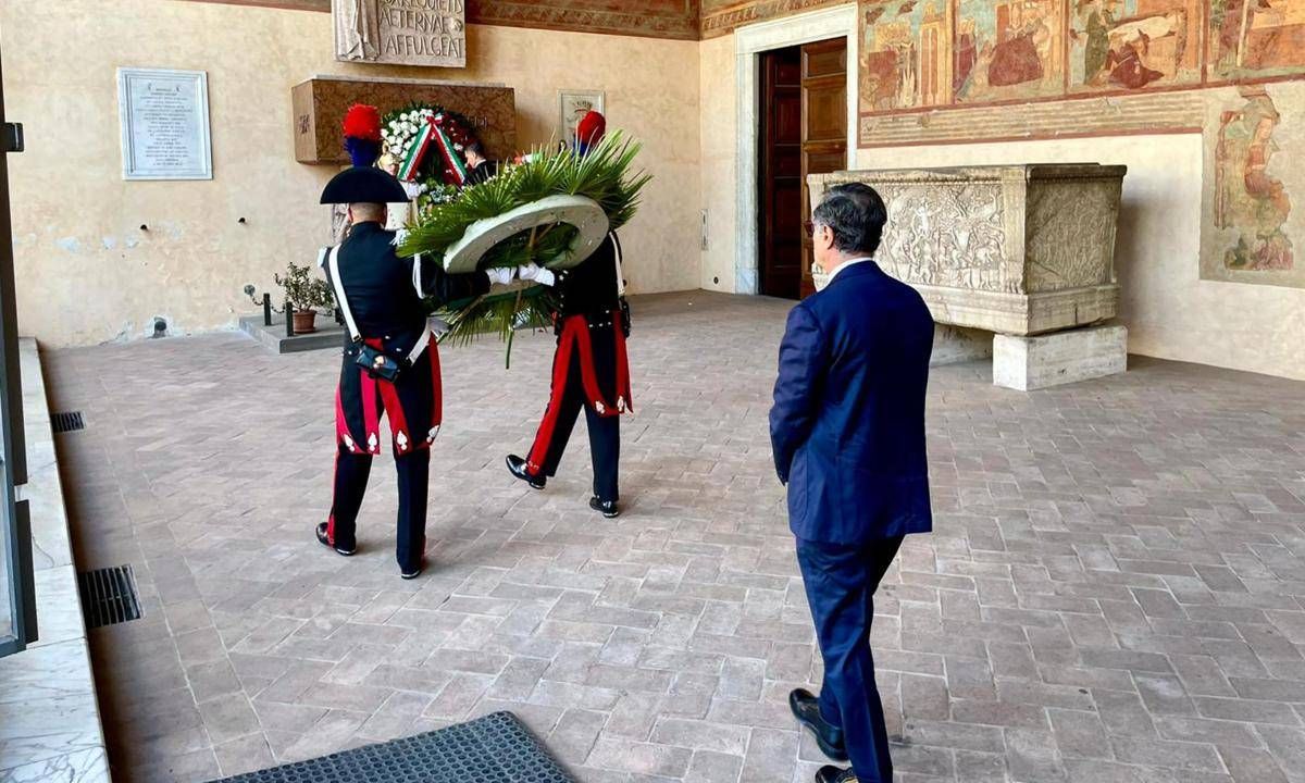 "Oggi, in rappresentanza del Governo per il 69esimo anniversario della scomparsa di Alcide De Gasperi, presso la Basilica di San Lorenzo fuori le Mura". Così il sottosegretario all'Ambiente e alla Sicurezza energetica Claudio Barbaro, che oggi ha rappresentato il presidente del Consiglio Giorgia Meloni alla ricorrenza di De Gasperi, in un post pubblicato su Facebook con le fotografie della cerimonia.Â