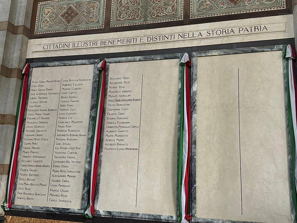Al termine della cerimonia è stato osservato un minuto di silenzio davanti alle lapidi dei nuovi iscritti. Oltre a Berlusconi vengono iscritti oggi al Famedio anche Marcello Abbado, musicista ed ex direttore del Conservatorio di Milano, Manlio Armellini, storico direttore del Salone del Mobile, Cesare, Alessandro e Natale Balbiani, della storica ditta di costruttori d'organi, la più antica d'Italia. Presenti anche i nomi di donne come Gaetanina Calvi, prima donna italiana a laurearsi in ingegneria civile al Politecnico di Milano nel 1913, Rosina Ferrario, prima donna aviatrice italiana. E ancora, Gisella Floreanini, insegnante di musica, partigiana e politica, prima donna ministro in Italia, la stilista Marta Marzotto, l'ex sottosearetario Ombretta Carulli Fumagalli, prima donna in Italia a ricoprire la cattedra universitaria di diritto canonico alla Cattolica, la partigiana Francesca Laura Wronowski. Iscritti inoltre il chitarrista jazz Franco Cerri, l'artista Alberto Garutti, l'editore Achille Mauri e l'orafo e scultore Alfredo Ravasco.