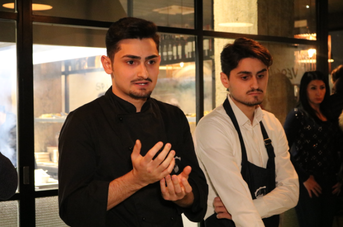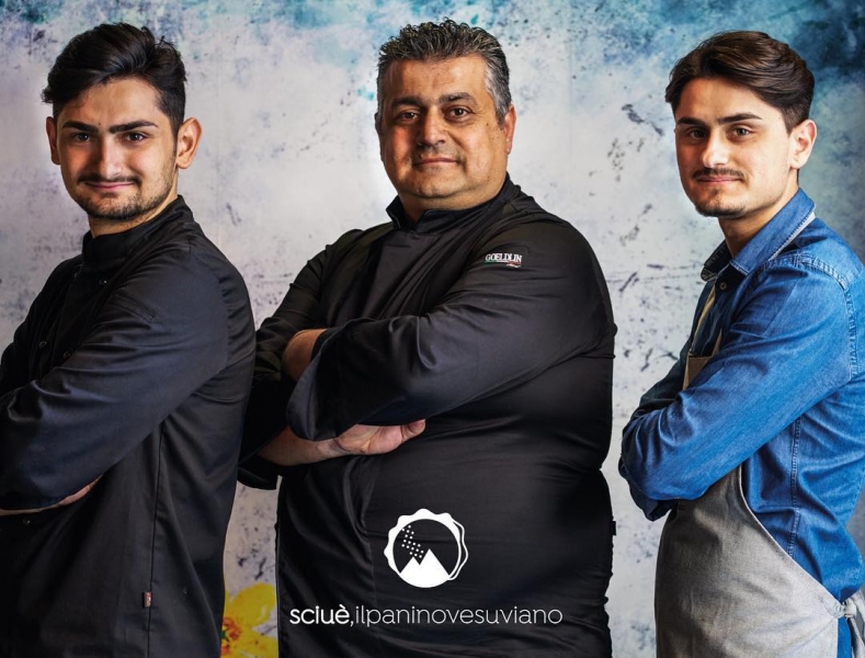 Per la serata è stato presentato il menù degustazione, preparato dalle mani esperte dello chef Giuseppe De Luca che ha esordito con tre portate di antipasti, crocchè di baccala con impanatura di farina di riso, polpetta di scottona al sugo su cialda di pane con emulsione di basilico e fonduta di parmigiano reggiano, e una focaccia alla genovese fatta con corazza di marchigiana cotta a bassa temperatura, cipolla d’Alife e scaglie di conciato Romano; si è passati poi ai panini, il fiore all’occhiello di “Sciuè, il panino vesuviano”, realizzati con carni pregiate per gli hamburger, materie prime tipicamente campane (mozzarella di bufala, provolone del monaco, pomodoro del piennolo DOP, pecorino bagnolese, papaccelle napoletane, scarole napoletana, etc. ) e prodotti presidi Slow Food. Conclusione magistrale con il dolce, una focaccia con confettura di Pera e scaglie di conciato romano.