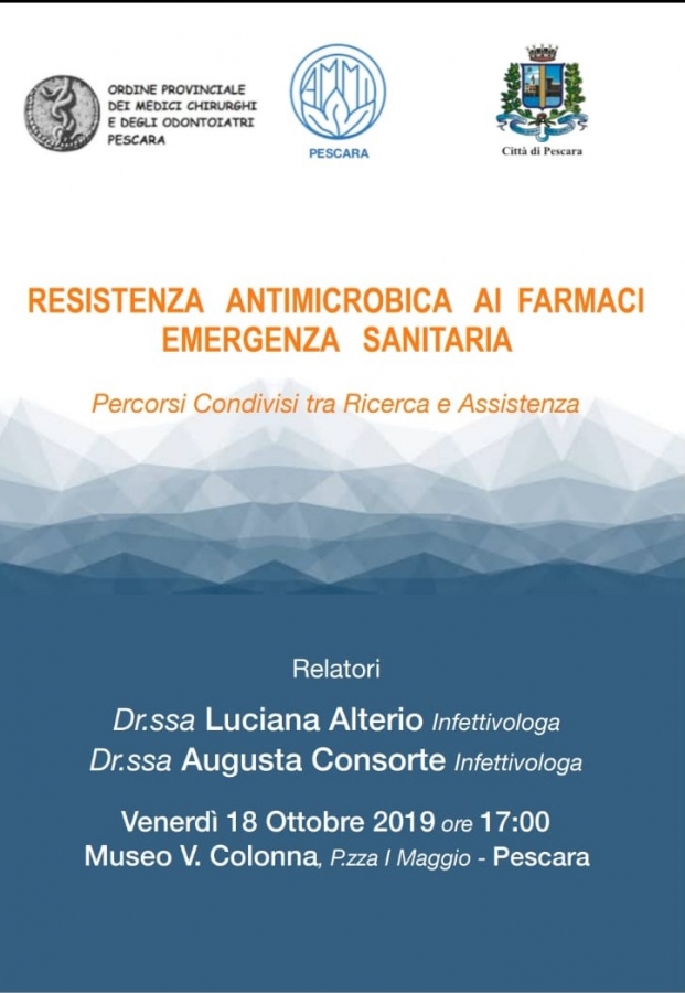 Gli antibiotici e la lotta ai batteri per debellare le malattie e le infezioni, questo l’attuale argomento di cui si è discusso nel convegno organizzato dall’AMMI di Pescara, nel pomeriggio del 118 ottobre, presso il Museo Vittoria Colonna di Pescara.
