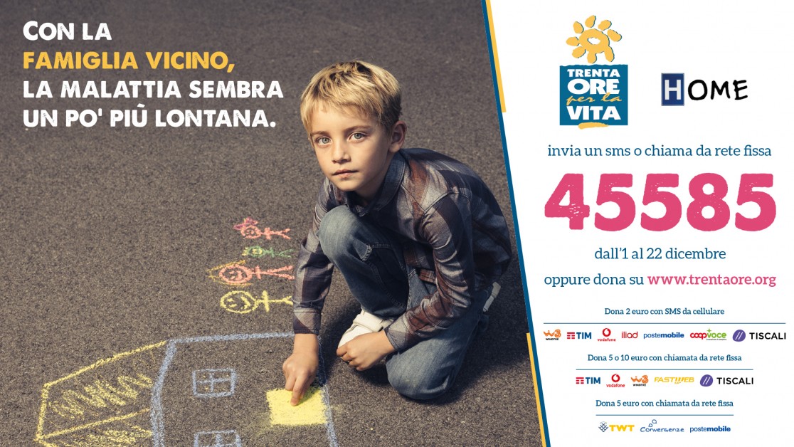 il numero solidale 45585 per realizzare Case accoglienza per piccoli pazienti con