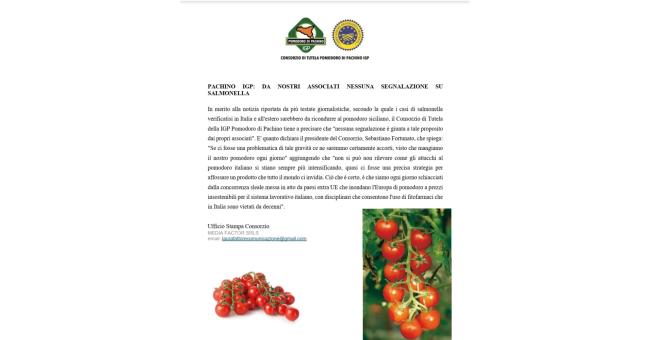 La nota è firmata dall’Ufficio Stampa del Consorzio di Tutela IGP Pomodoro di Pachino, che resta a disposizione per ulteriori chiarimenti.