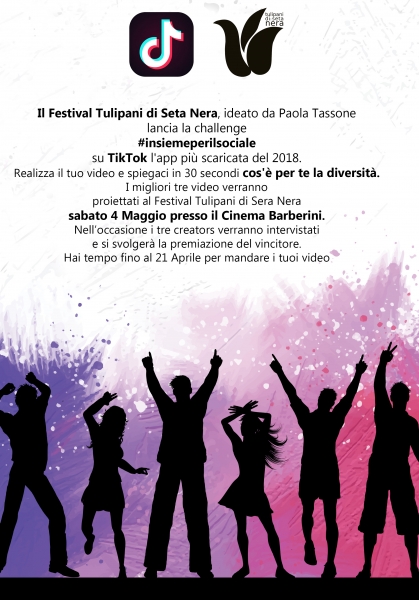 Attraverso brevi video, che hanno una durata media di 10-15 secondi, con sottofondi musicali di ogni genere, gli utenti diventano i soli ed unici protagonisti del video , creando delle coreografie con mosse equivalenti al testo della canzone e applicando svariati filtri o effetti speciali per rendere il tutto incredibilmente impattante. Il Festival sociale Tulipani di Seta Nera, ideato e diretto da Paola Tassone, per la sua XII Edizione ha deciso di lanciare su Tik Tok un contest su temi sociali sfruttando il fenomeno virale per arrivare a parlare a tutti i giovanissimi di “diversità”